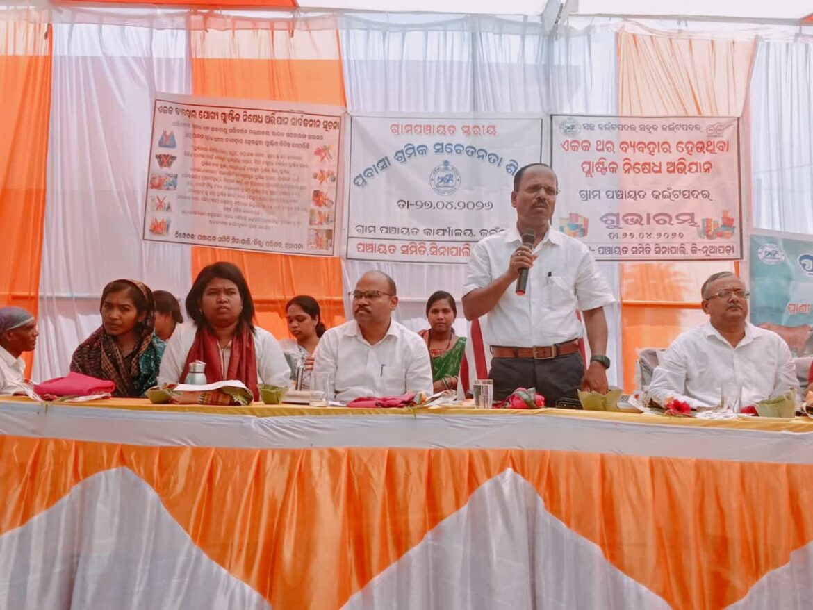 ନୂଆପଡ଼ା -୨୭/୦୪- ନୂଆପଡ଼ା ଜିଲ୍ଲାକୁ ପ୍ରବାସୀ ଶ୍ରମିକ ମୁକ୍ତ ଏବଂ ପ୍ଲାଷ୍ଟିକ ମୁକ୍ତ ଜିଲ୍ଲାରେ ପରିଣତ କରିବା ପାଇଁ ପ୍ରଶାସନ ପକ୍ଷରୁ ଅଣ୍ଟା ଭିଡ଼ାଯାଇଛି। ସିନାପାଲି ବ୍ଲକ ଅନ୍ତର୍ଗତ କଇଟପଦର ପଞ୍ଚାୟତରେ ଜିଲ୍ଲାପାଳ ମଧୁସୂଦନ ଦାଶଙ୍କ ଅଧ୍ୟକ୍ଷତାରେ ଏକ ଭବ୍ୟ ‘ପ୍ରବାସୀ ଶ୍ରମିକ ନିରାକରଣ ଓ ସଚେତନତା ଶିବିର’ ଅନୁଷ୍ଠିତ ହୋଇଯାଇଛି।