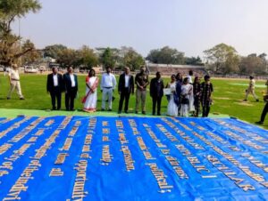 ନୂଆପଡା -୨୮/୧ (ସୁରେନ୍ଦ୍ର ତିୱାରୀ ) ନୂଆପଡା ଜିଲ୍ଲାସ୍ତରୀୟ ଗଣତନ୍ତ୍ର ଦିବସ ଉତ୍ସବ ଅବସରରେ ପ୍ରସିଦ୍ଧ କାଠ ଶିଳ୍ପୀ ଶ୍ରୀମତୀ ପୁଷ୍ପାଞ୍ଜଳି ମହାନନ୍ଦଙ୍କ ଦ୍ୱାରା ଭାରତୀୟ ସମ୍ବିଧାନର ପ୍ରସ୍ତାବନାକୁ କାଠରେ ନିର୍ମିତ ଏକ ଅପୂର୍ବ କଳାକୃତି ଦ୍ଵାରା ପ୍ରଦର୍ଶିତ କରାଯାଇଥିଲା। ଏହି କଳାକୃତିର ଆକାର ୧୮ × ୨୬ ଫୁଟ୍, ଯାହା ଗଣତନ୍ତ୍ର ଦିବସର ପ୍ରତୀକ ରୂପେ ନିର୍ଦ୍ଧାରିତ।