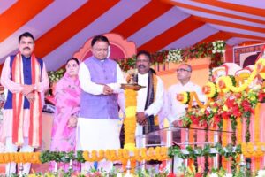 ସ୍ୱାଗତ ଭାଷଣ ଦେଇ ଜିଲ୍ଲାପାଳ ମଧୁସୁଦନ ଦାଶ ମୁଖ୍ୟ ମନ୍ତ୍ରୀ ଓ ଅନ୍ୟାନ୍ୟ ଅତିଥିଗଣ ଙ୍କୁ ସ୍ୱାଗତ ସମ୍ବର୍ଦ୍ଧନା ଜ୍ଞାପନ କରିଥିଲେ।ମୁଖ୍ୟମନ୍ତ୍ରୀ ମୋହନ ଚରଣ ମାଝୀଙ୍କ ସହ ସ୍ଵାସ୍ଥ୍ୟ ଓ ସାଂସଦ ବ୍ୟାପାର ମନ୍ତ୍ରୀ ମୁକେଶ ମହାଲିଙ୍ଗ,ଗଣ ଶିକ୍ଷା,ଅନୁସୂଚିତ ଜାତି ଜନଜାତି ମନ୍ତ୍ରୀ ନିତ୍ୟାନନ୍ଦ ଗଣ୍ଡ,ପଞ୍ଚାୟତି ରାଜ ଓ ପାନୀୟ ଜଳ ମନ୍ତ୍ରୀ ରବୀ ନାରାୟଣ ନାଏକ, କଳାହାଣ୍ଡି ସାଂସଦ ମାଳବିକା ଦେବୀ, ରାଜ୍ୟସଭା ସାଂସଦ ସୁଜିତ୍ କୁମାର, ଖରିଆର ରୋଡ ଏନଏସି ଅଧ୍ୟକ୍ଷା ଡ଼ ସୋନିଆ ଜୈନ ପ୍ରମୁଖ ମଞ୍ଚାସିନ ଥିଲେ ।