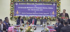 ନୂଆପଡା -୨୦/୧୨ (ମାରାଗୁଡ଼ା ଏକ୍ସପ୍ରେସ) ନୂଆପଡ଼ାରେ ଡିସେମ୍ବର ୧୫ ରୁ ୧୯ ଡିସେମ୍ବର ୫- ଦିନ ବ୍ୟାପୀ ଚାଲିଥିବା ୪୦ ଘଣ୍ଟାର ମଧ୍ୟସ୍ଥତା ପ୍ରଶିକ୍ଷଣ କାର୍ଯ୍ୟକ୍ରମ ଉଦଯାପିତ ହୋଇଯାଇଛି। ଓଡିଶା ଉଚ୍ଚ ନ୍ୟାୟାଳୟର ବିଚାରପତି ତଥା ଓଡିଶା ରାଜ୍ଯ ଆଇନ ସେବା ପ୍ରାଧିକରଣର କାର୍ଯ୍ୟନିର୍ବାହୀ ଅଧ୍ୟକ୍ଷ ଜଷ୍ଟିସ ମାନସ ରଞ୍ଜନ ପାଠକ ଆଭାସୀ ମାଧ୍ୟମରେ ଏହି ଉଦଯାପନୀ ସମାରୋହରେ ସମସ୍ତଂକୁ ସମ୍ବୋଧିତ କରି, ମଧ୍ୟସ୍ଥତା ହେଉଛି ବିବାଦ ସମାଧାନର ଏକ କମ ଖର୍ଚ୍ଚ, ସମୟସାପେକ୍ଷ ଏବଂ ଲୋକକୈନ୍ଦ୍ରିକ ପଦ୍ଧତି ବୋଲି କହିଥିଲେ । ମଧ୍ୟସ୍ଥତାର ବିଭିନ୍ନ ପର୍ଯ୍ୟାୟ ଉପରେ ଗୁରୁତ୍ତ୍ୱାରୋପ କରିଥିଲେ। ମଧ୍ୟସ୍ଥତା ମାମଲା ହ୍ରାସ କରିବାରେ ଏବଂ ସାମାଜିକ ସଦ ଭାବ ରକ୍ଷା କରିବା ସହିତ ଶୀଘ୍ର ନ୍ୟାୟ ସୁନିଶ୍ଚିତ କରିବାରେ ଗୁରୁତ୍ୱପୂର୍ଣ୍ଣ ଭୂମିକା ଗ୍ରହଣ କରେ ବୋଲି ସେ ଆଲୋକପାତ କରିଥିଲେ । ଉଦଯାପନୀ ସମାରୋହରେ ଜିଲ୍ଲା ଓ ଦୌରା ଜଜ୍ ତଥା ପ୍ରାଧିକରଣର ଅଧ୍ୟକ୍ଷ ନିରଞ୍ଜନ ପଣ୍ଡା, ଅତିରିକ୍ତ ଜିଲ୍ଲା ଓ ଦୌରା ଜଜ୍, ନୂଆପଡ଼ା ସୁନୀଲ କୁମାର ଦାସ, ମହିଳା କୋର୍ଟ ଜଜ୍ ସରୋଜିନୀ ସାହୁ, ରେଜିଷ୍ଟ୍ରାର୍ ସୌଭାଗ୍ଯ ରଞ୍ଜନ ପ୍ରଧାନ, ଉପ-ଖଣ୍ଡ ବିଚାର ବିଭାଗୀୟ ବିଚାରପତି ସ୍ନାତାକି ଦାଶ, ଜିଲ୍ଲା ଓକିଲ ସଂଘ ଉପସଭାପତି ପ୍ରକାଶ ଚନ୍ଦ୍ର ସ୍ୱାଇଁ, ସଚିବ ପ୍ୟାରିଲାଲ ଦେୱାଙ୍ଗନ, ଜିଲ୍ଲା ସିଭିଲ ଓକିଲ ସଂଘ ସଭାପତି ବିଶ୍ୱମଣି ପାଣିଗ୍ରାହୀ, ସଚିବ ଦେବଦତ୍ତ ଦିକ୍ଷିତ ପ୍ରମୁଖ ଉପସ୍ଥିତ ଥିଲେ । କାର୍ଯ୍ୟକ୍ରମରେ ମାନ୍ୟବର ଉଚ୍ଚତମ ନ୍ୟାୟାଳୟଙ୍କ ମଧ୍ୟସ୍ଥତା ଏବଂ ସମାଧାନ ପ୍ରକଳ୍ପ କମିଟି ଦ୍ୱାରା ନିଯୁକ୍ତ ବରିଷ୍ଠ ପ୍ରଶିକ୍ଷକ ତଥା ଝାଡ଼ଖଣ୍ଡରୁ ଓକିଲ ରାଜେଶ ଦାଶ ଏବଂ ଶିବ ଶଙ୍କର ପ୍ରସାଦ ଙ୍କୁ ସ୍ମୃତି ଫଳକ ପ୍ରଦାନ କରାଯାଇଥିଲା ।