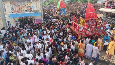 ରଥଯାତ୍ରାରେ ଶ୍ରଦ୍ଧାଳୁଙ୍କ ପ୍ରବଳ ଭିଡ଼ ‐ ମହିଳା ଟାଣିଲେ ଦେବଦଳନ ରଥ